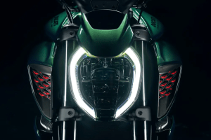Εξίσου ισχυρή είναι η Diavel της Ducati, καθώς χρησιμοποιεί V4 Granturismo κινητήρα 1.158 κ.εκ., απόδοσης 168 ίππων. O πρώτος εμφανής κοινός παρονομαστής με την Batur είναι η πράσινη μεταλλική απόχρωση ονόματι “Scarab Green”, η οποία προέρχεται από την παλέτα της Bentley. Παρατηρήστε επίσης τους νέους αποκλειστικούς σφυρήλατους τροχούς σε σκούρο σατινέ χρώμα αφήνοντας ορατές κάποιες επεξεργασμένες επιφάνειες, παραπέμποντας στις ζάντες της Batur.