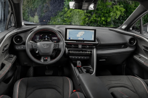 Σημαντικές είναι οι αλλαγές και στα ενδότερα του νέου C-HR, όπου η ποιότητα έχει ανέβει επίπεδο με μαλακά πλαστικά στο μεγαλύτερο τμήμα του ταμπλό και στα πάνελ των εμπρός θυρών.