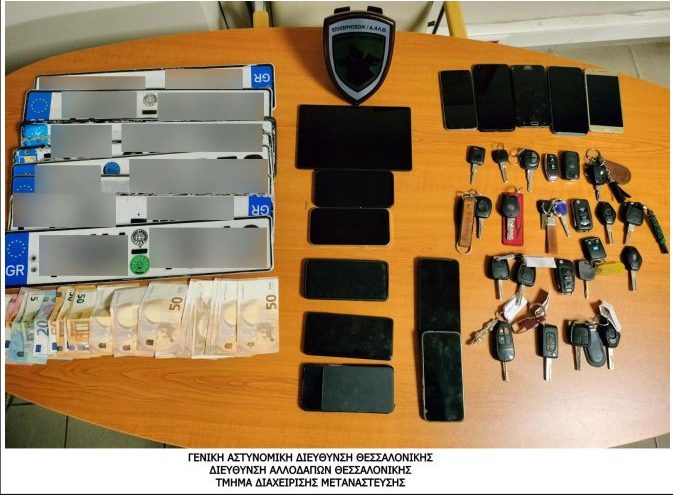 Επιπλέον κατασχέθηκαν πέντε οχήματα, 18 κλειδιά εκκίνησης αυτοκινήτων, πλήθος τηλεφωνικών και ηλεκτρονικών μέσων και το χρηματικό ποσό των 1.910 ευρώ, ενώ σημειώνεται ότι σε βάρος τριών εκ των συλληφθέντων προέκυψαν και εθνικά εντάλματα σύλληψης, διωκτικά έγγραφα, αλλά και διατάξεις αρμόδιων εισαγγελικών αρχών.