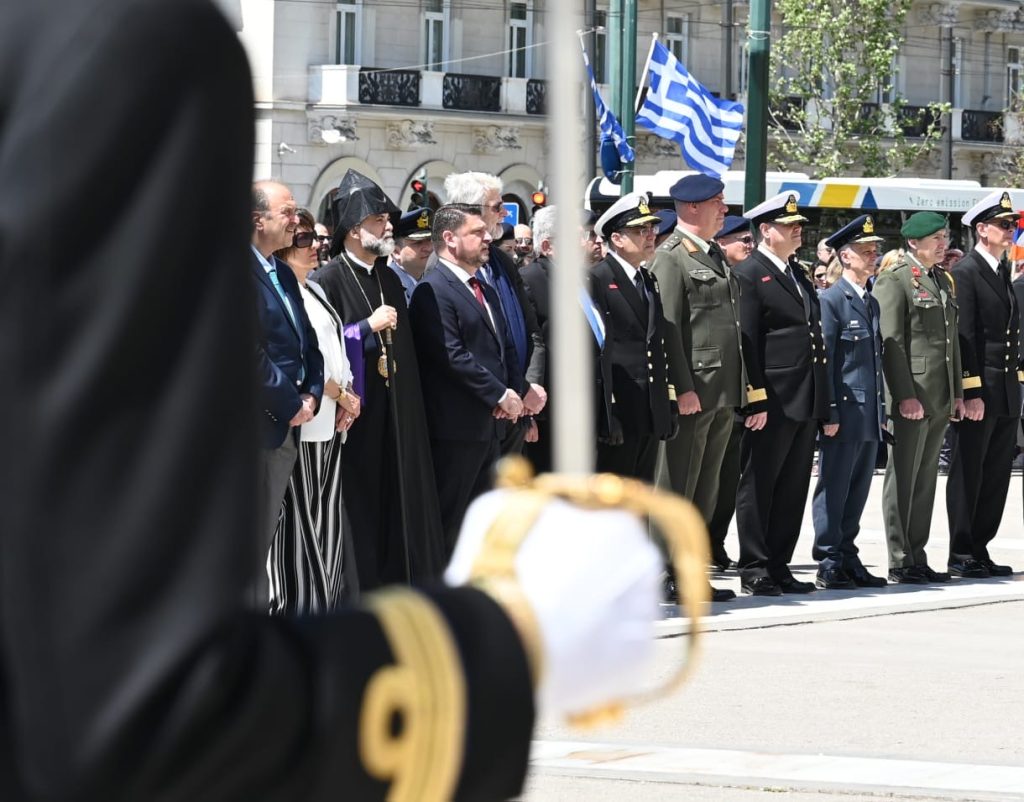 Ακολούθησε κατάθεση στεφάνων στο Μνημείο του Άγνωστου Στρατιώτη.