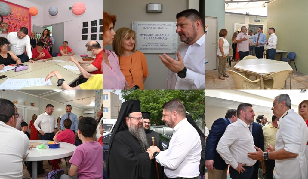 Το έργο της «Ψηφιακής ανάδειξης της Σαλαμίνας μέσω παρουσίασης της ιστορίας και του πολιτιστικού της αποθέματος με χρήση σύγχρονων οπτικοακουστικών συστημάτων», που στεγάζεται στην Νέα Δημοτική Βιβλιοθήκη Αμπελακίων «Μαρία Καντάρη» εγκαινίασε σήμερα ο Περιφερειάρχης Αττικής κ. Νίκος Χαρδαλιάς, υπό την παρουσία του Δημάρχου Σαλαμίνας Γιώργου Παναγόπουλου και του Σεβασμιωτάτου Μητροπολίτου Μεγάρων και Σαλαμίνος κ. Κωνσταντίνου.