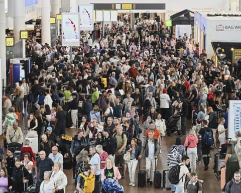 Tο αεροδρόμιο των Βρυξελλών ανακοίνωσε ότι οι μισές πτήσεις που είναι προγραμματισμένες να αναχωρήσουν την Κυριακή θα πρέπει να ακυρωθούν για να αποτραπούν μεγλαλύτερες ουρές στην αναγκαστικά χειροκίνητη διαδικασία επιβίβασης. Εικόνες από το Χίθροου δείχνουν ταξιδιώτες να περιμένουν εγκλωβισμένοι σε τεράστιες ουρές,