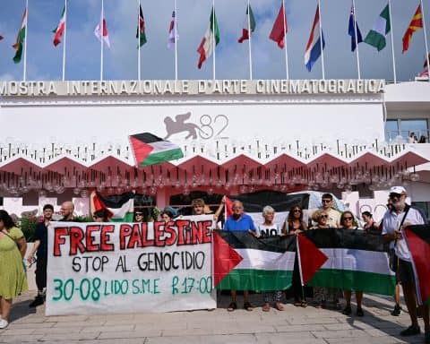 Ιταλία: Διαδηλωτές ξεδίπλωσαν πανό για τη Γάζα πριν από την έναρξη του κινηματογραφικού φεστιβάλ της Βενετίας