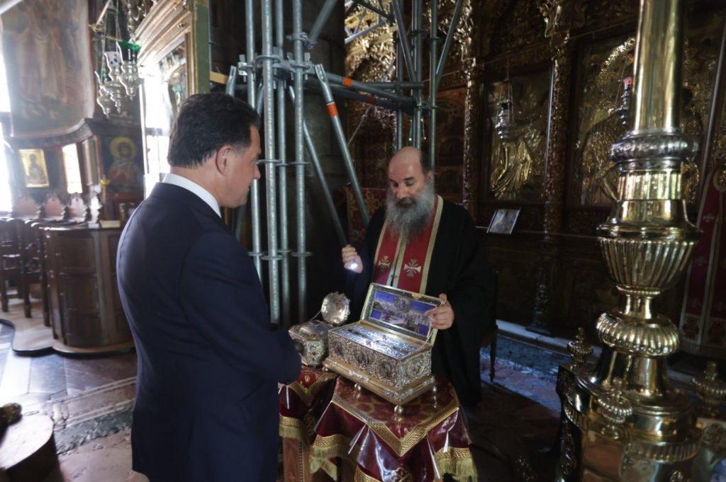 «Το Άγιο Όρος παραμένει ο Φάρος της Ορθοδοξίας το σεβόμαστε και το αγαπάμε γι’ αυτό και δεν το εμπλέκουμε στις κομματικές μας διαμάχες. Μεγάλη η Χάρη της Παναγίας μας και μεγάλη η προσφορά των Γερόντων που την διακονούν στο περιβόλι της», ανέφερε χαρακτηριστικά.