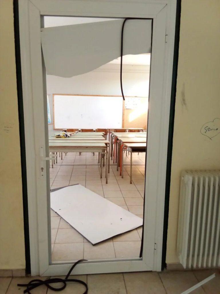 Οι φθορές προκλήθηκαν από αγνώστους στο Μειονοτικό Δημοτικό Σχολείο της Σάλπης, όπου φιλοξενείται η λειτουργία του 82ου Εκλογικού Τμήματος.