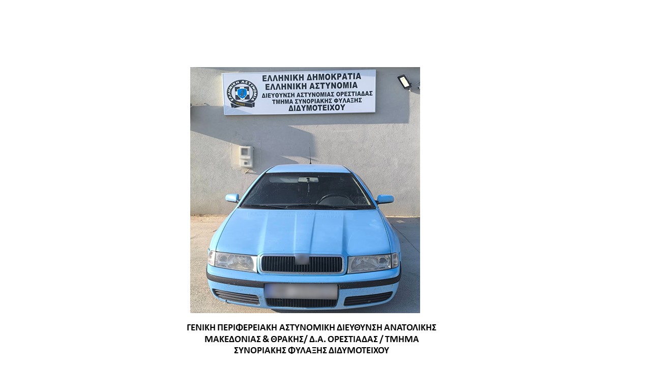 Στην Εγνατία οδό Αλεξανδρούπολης – Κομοτηνής συνελήφθη ένας ημεδαπός και ένας αλλοδαπός που μετέφεραν παράνομα με Ι.Χ. έξι άτομα. Διαπιστώθηκε για το όχημα είχε δηλωθεί κλοπή στις αρχές Ιουλίου στη Θεσσαλονίκη, ενώ έφερε πινακίδα κυκλοφορίας η οποία ανήκει σε άλλο όχημα και είχε δηλωθεί η κλοπή της στα μέσα του περασμένου μήνα και πάλι σε αστυνομική Υπηρεσία της Θεσσαλονίκης.