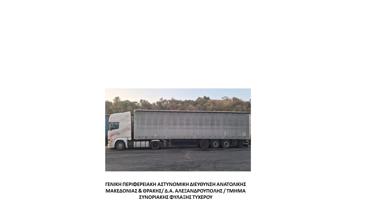 Επιπλέον, στο Συνοριακό Σημείο Διέλευσης Κήπων Έβρου συνελήφθη ένας ακόμη αλλοδαπός οδηγώντας νταλίκα (ρυμουλκό μετά ρυμουλκούμενου). Επιχείρησε να περάσει στη χώρα, ωστόσο σε έλεγχο που πραγματοποίησαν οι αστυνομικοί με τη βοήθεια συσκευής ανίχνευσης καρδιακών παλμών και τη συνδρομή τελωνειακών υπαλλήλων, διαπίστωσαν ότι στο ρυμουλκούμενο ήταν επιμελώς κρυμμένοι επτά μη νόμιμοι μετανάστες, τους οποίους ο δράστης μετέφερε παράνομα στο εσωτερικό της χώρας.