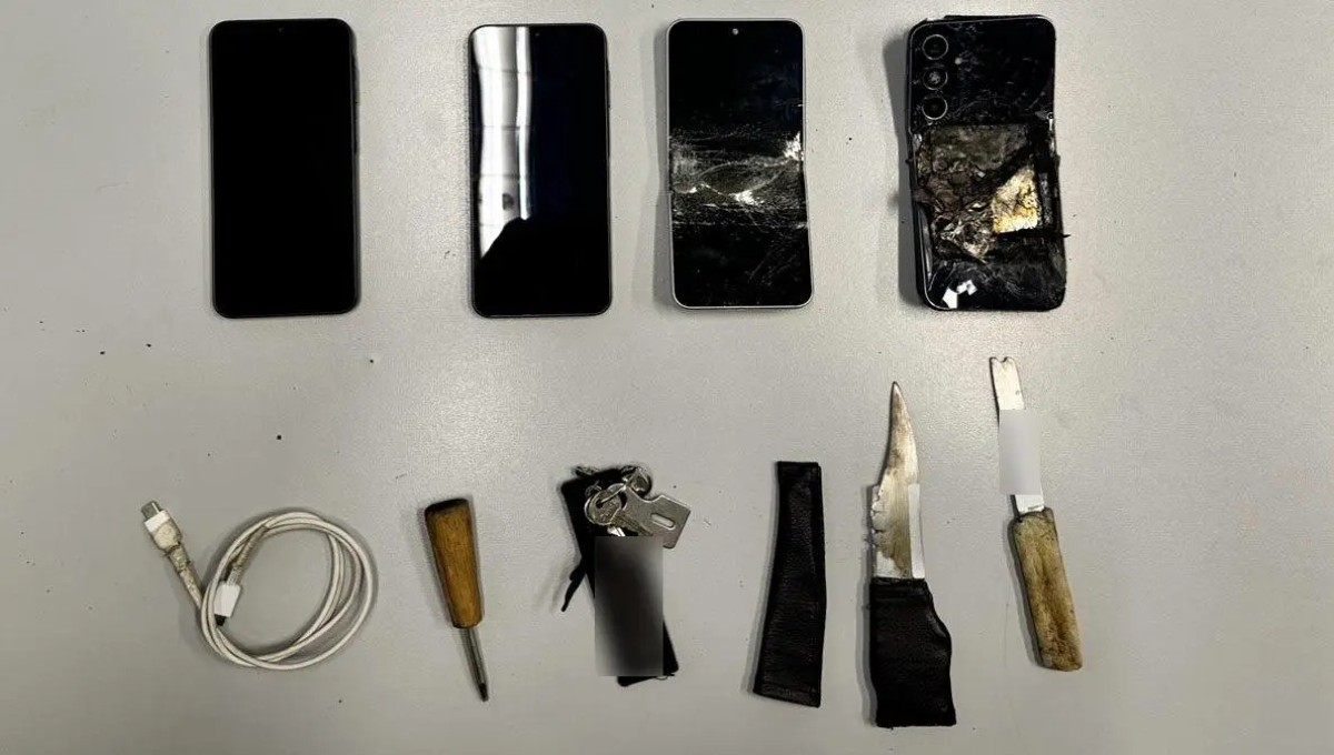 Στο πλαίσιο των ερευνών, κατά περίπτωση, βρέθηκαν και κατασχέθηκαν, 2 μαχαίρια, αυτοσχέδιο σουβλί, 4 κινητά τηλέφωνα, φορτιστής κινητών τηλεφώνων, κρίκος με 3 κλειδιά, καθώς και ιδιόχειρες σημειώσεις.