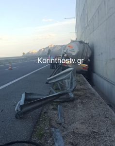 Σοβαρό τροχαίο σημειώθηκε το μεσημέρι της Δευτέρας στον αυτοκινητόδρομο Πατρών – Κορίνθου, στο ρεύμα προς Κόρινθο, κοντά στην περιοχή του Δερβενίου. Φορτηγό που μετέφερε ελαιόλαδο εξετράπη της πορείας του, προσέκρουσε στις προστατευτικές μπάρες και ακινητοποιήθηκε στο τοιχίο του δρόμου.