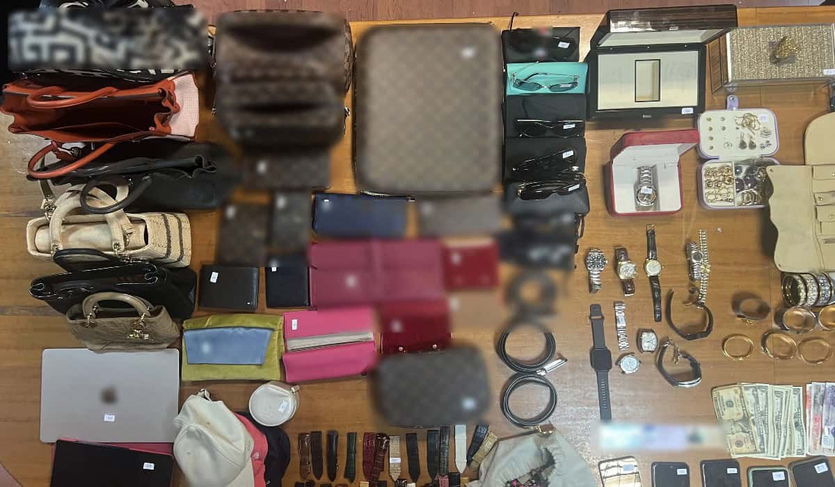 - πλήθος επώνυμων γυναικείων τσαντών, πορτοφολιών, ζωνών και κασετινών, γυαλιών, καπέλων, πολυτελών μαρκών,