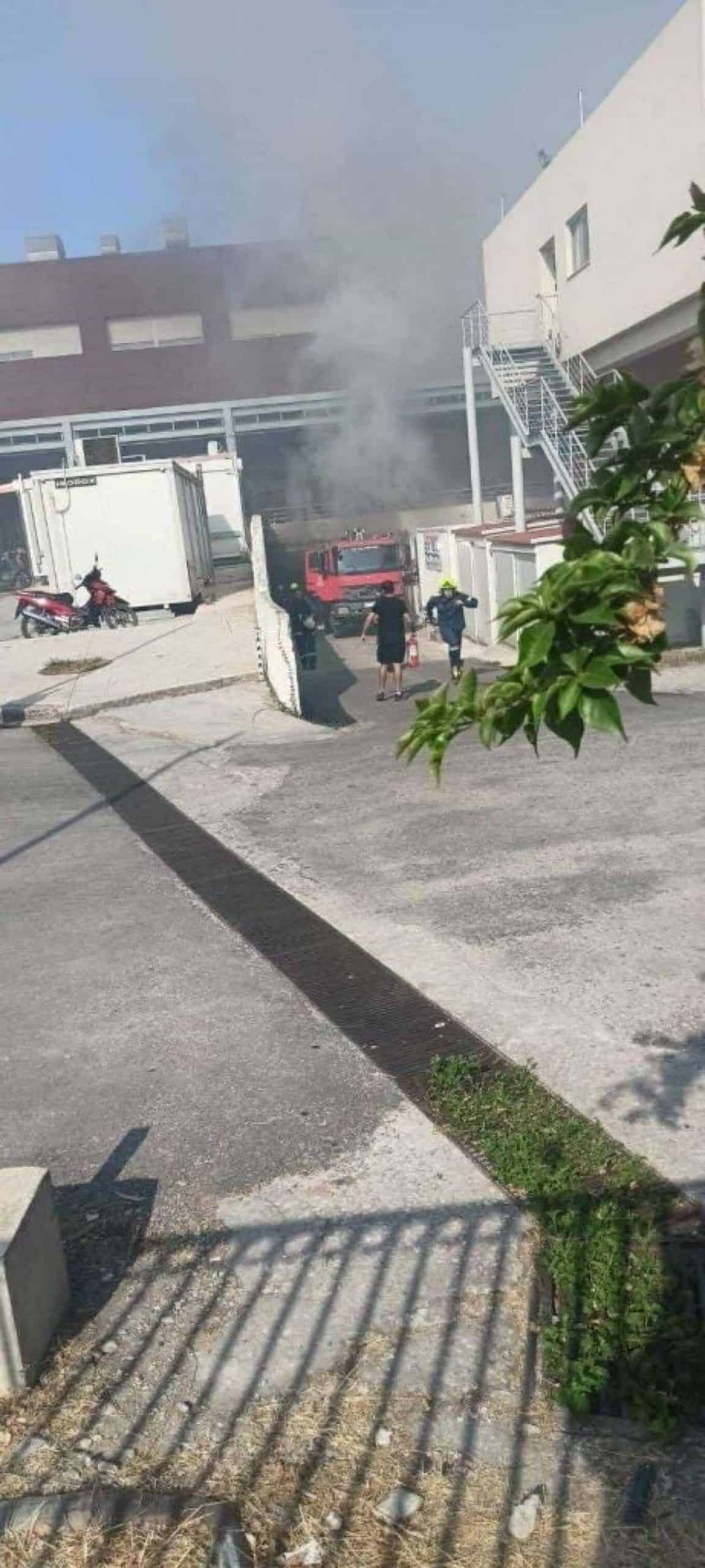 Πληροφορίες αναφέρουν πως η φωτιά καίει παλέτες.