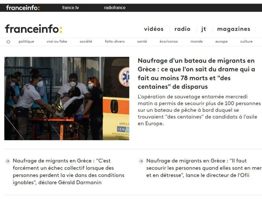 Συνεχείς είναι οι αναφορές των γαλλικών ΜΜΕ στο πολύνεκρο ναυάγιο μεταναστών στα ανοικτά της Πύλου επισημαίνοντας, μεταξύ άλλων, την κήρυξη τριήμερου πένθους στην Ελλάδα.