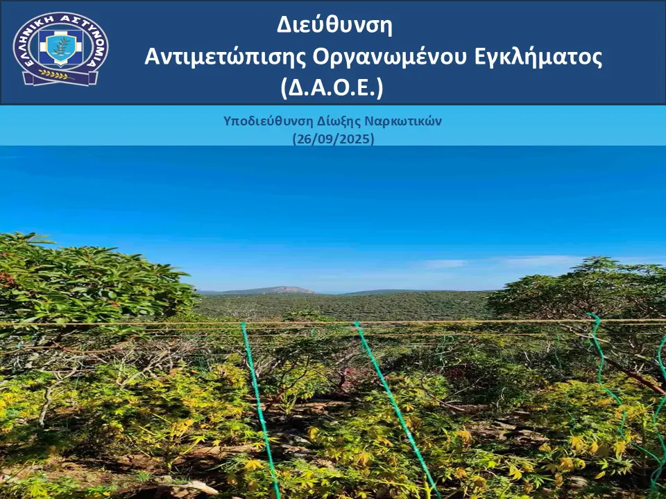 Από τη Διεύθυνση Αντιμετώπισης Οργανωμένου Εγκλήματος εξαρθρώθηκε εγκληματική οργάνωση, τα μέλη της οποίας δραστηριοποιούνταν στην καλλιέργεια δενδρυλλίων κάνναβης με την εγκατάσταση πλήρως εξοπλισμένης φυτείας, καθώς και στη διακίνηση σημαντικών ποσοτήτων ακατέργαστης κάνναβης, σε διάφορες περιοχές της Αττικής και της Αρκαδίας.