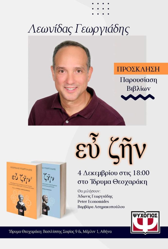 Ο Λεωνίδας Γεωργιάδης θα παρουσιάζει στις 4 Δεκεμβρίου με κάθε επισημότητα και λαμπρότητα τα νέα βιβλία «Ευ Ζην»,
