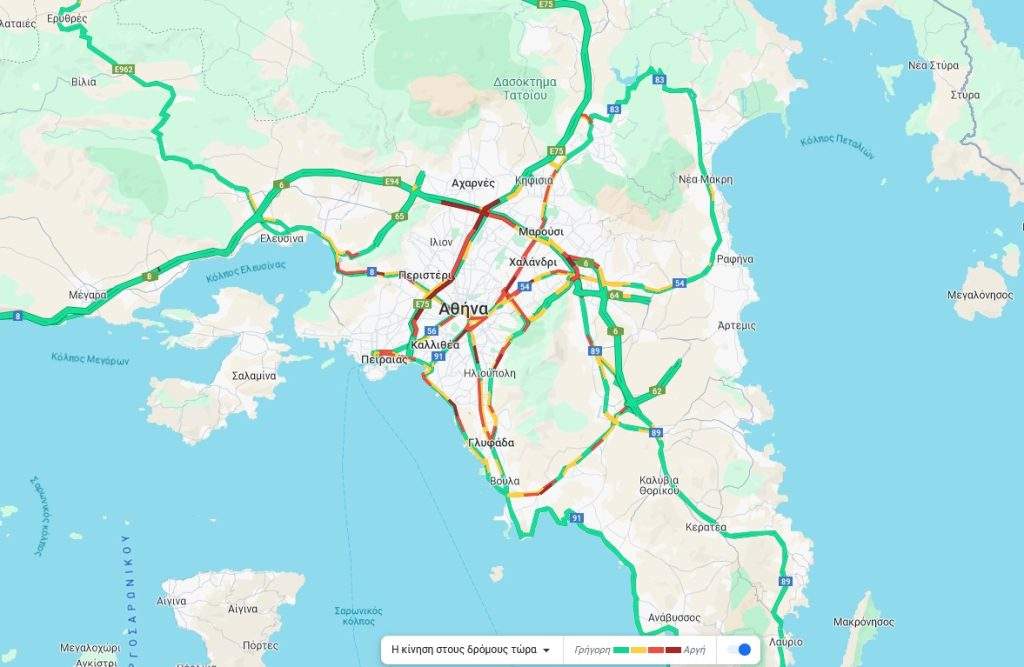 Την ίδια ώρα, μποτιλιαρισμένο είναι το κέντρο της Αθήνας, στη Λεωφόρο Κωνσταντίνου και στη Βασιλίσσης Σοφίας ενώ στο «κόκκινο» είναι και η Κηφισίας, μετά το ύψος της Κατεχάκη.