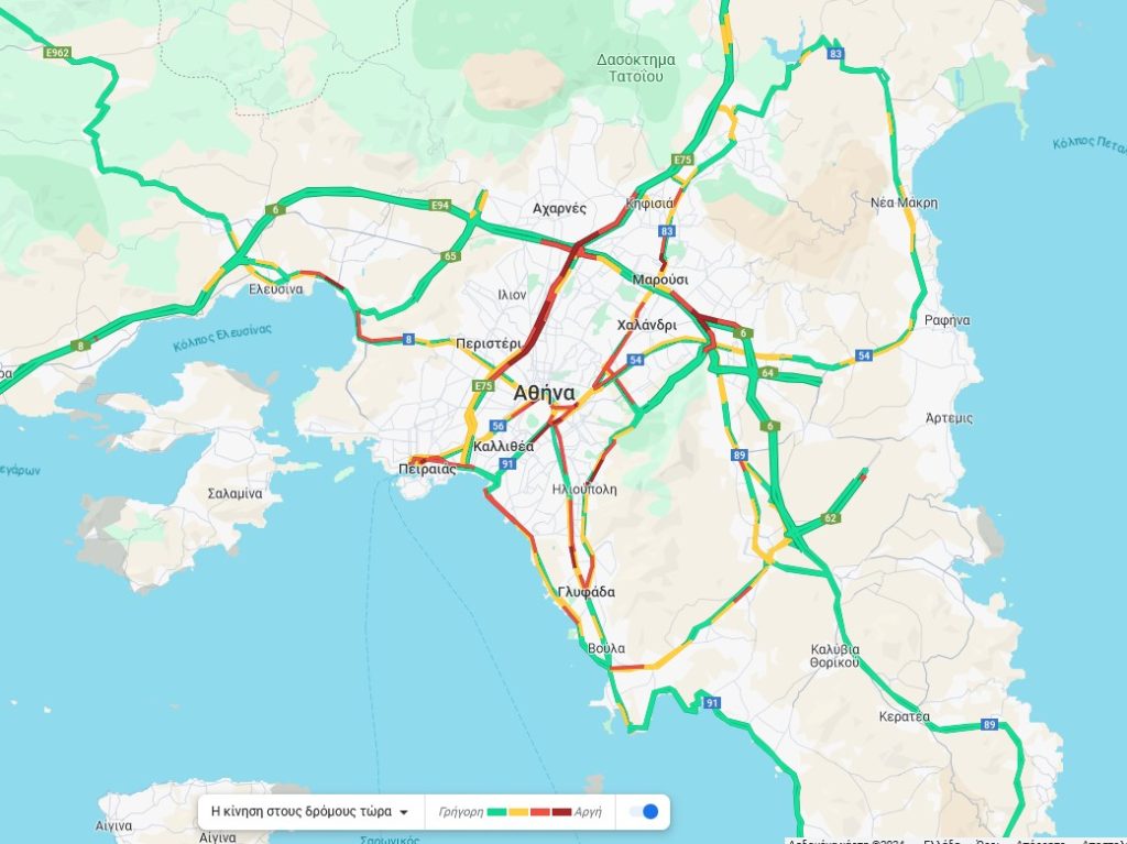Κίνηση στους δρόμους: Μεγάλες καθυστερήσεις στην Αττική Οδό – Στο «κόκκινο» οι κεντρικές οδικές αρτηρίες