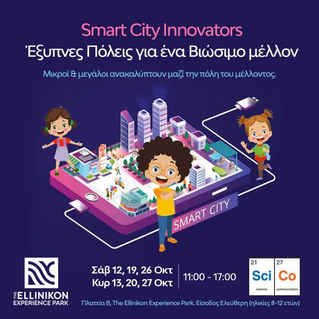 Παράλληλα, και για 3 σαββατοκύριακα του Οκτωβρίου, στο The Ellinikon Experience Park η εξειδικευμένη ομάδα της SciCo, θα βοηθήσει τους «μικρούς επιστήμονες», να ανακαλύψουν τη σημασία της «έξυπνης» πόλης και να οραματιστούν, μέσα από πρωτότυπες ομαδικές δράσεις και βιοκλιματικές πρακτικές, τη νέα πόλη που ήδη δημιουργείται στο The Ellinikon.