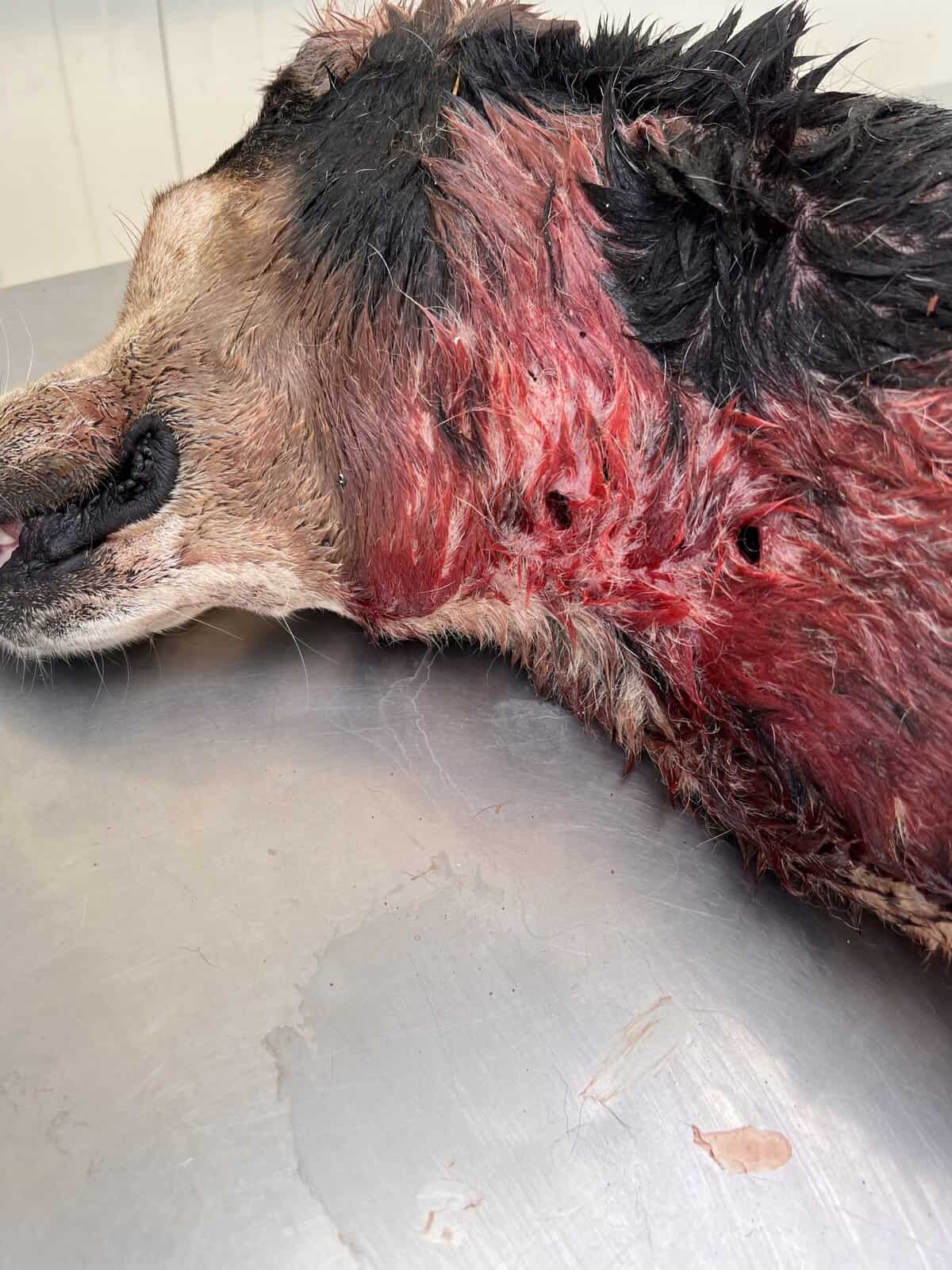 Η νεκροψία των κτηνιάτρων του ΔΙΚΕΠΑΖ έδειξε ότι το ζώο είναι υποστεί σοβαρά τραύματα στην τραχηλική, θωρακική και βουβωνική χώρα.
