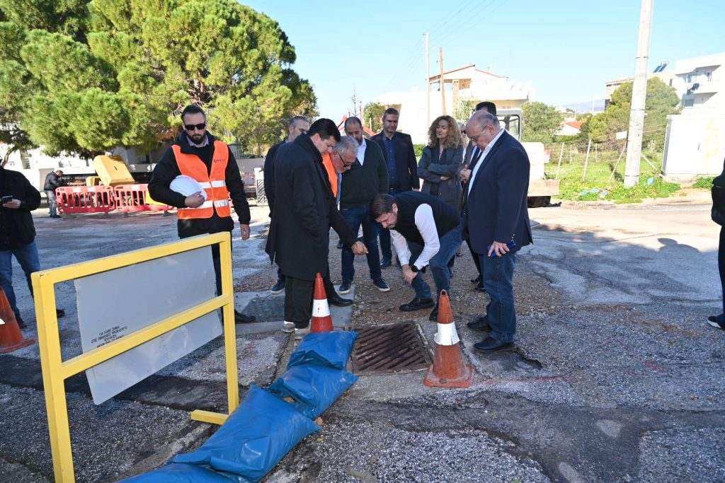 Ιδιαίτερη βαρύτητα δόθηκε στην αυτοψία του Περιφερειάρχη Αττικής στο εργοτάξιο του εν εξελίξει συμπληρωματικού αντιπλημμυρικού έργου της Δημοτικής Κοινότητας Σαρωνίδας, προϋπολογισμού 3.387.000 ευρώ (πλέον ΦΠΑ). Πρόκειται για ένα εκτεταμένο και τεχνικά σύνθετο έργο, κρίσιμης σημασίας για την προστασία της περιοχής από πλημμυρικά φαινόμενα. Το έργο περιλαμβάνει την κατασκευή και επέκταση δικτύων συλλογής και αποχέτευσης ομβρίων υδάτων σε σειρά οδών, με στόχο την αποσυμφόρηση του υφιστάμενου δικτύου, τη βελτίωση της απορροής των όμβριων και τη θωράκιση του οικιστικού ιστού.