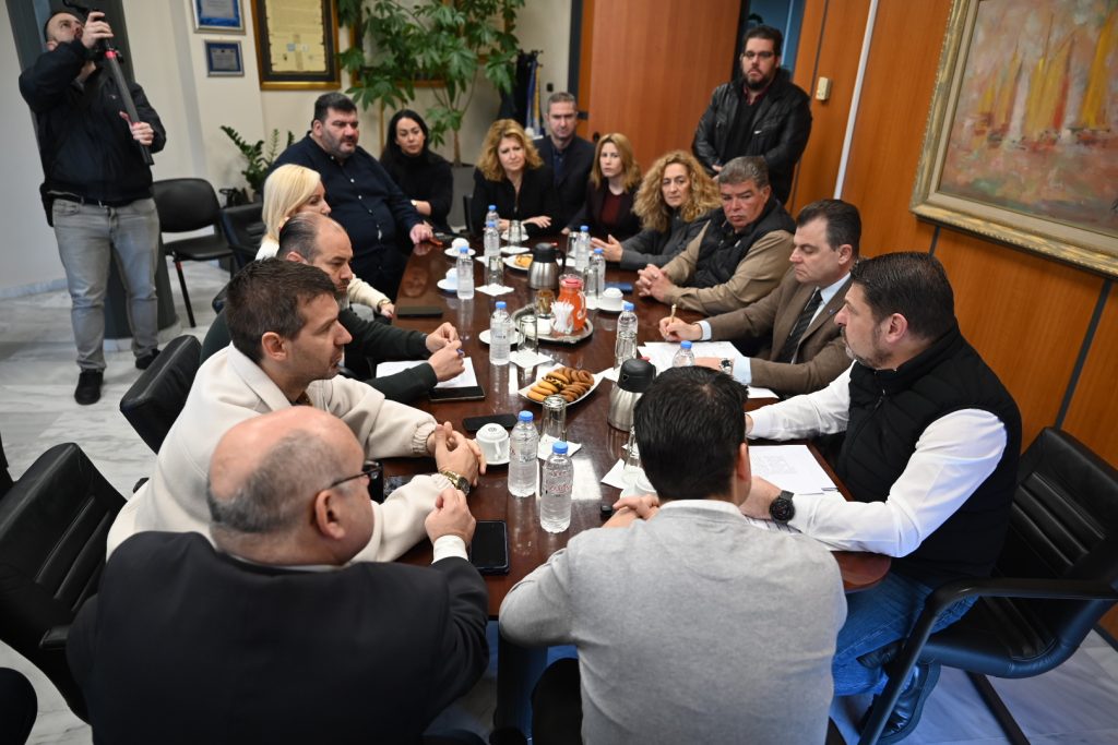 Στη σύσκεψη που πραγματοποιήθηκε στο δημαρχιακό μέγαρο, τον Δήμαρχο Δημήτρη Παπαχρήστου πλαισίωναν οι Αντιδήμαρχοι Κωνσταντίνος Γκίκας, Ιάσονας Μωραϊτόπουλος, Ακριβή Καρούμπαλη, Βικτώρια Σιμιτζή, Δημήτριος Καζάνας, Χαράλαμπος Γαλάνης, Σταματίνα Νέρα, Σταύρος Πετρόπουλος, Ιωάννης Ευφραιμιάδης και Γιώργος Σωτήρχος καθώς και ο Γενικός Γραμματέας του Δήμου, Αντώνης Κουλουβράκης.