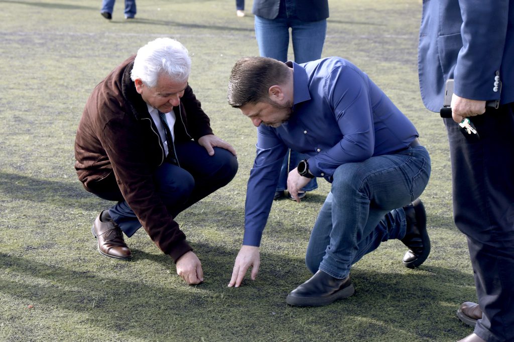 Το δεύτερο έργο, αφορά την παρέμβαση αντικατάστασης του χλοοτάπητα που χρειάζεται να γίνει στο γήπεδο του Ραφιά, όπου επίσης είναι σε φάση υλοποίησης.