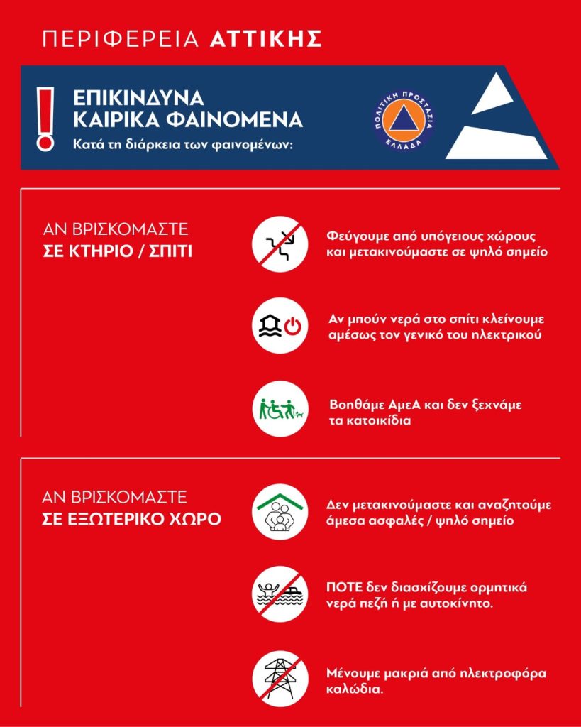 Παρακολουθούμε τις επίσημες ενημερώσεις και ακολουθούμε τις οδηγίες των αρμόδιων αρχών. Σε περίπτωση ανάγκης ή αν απαιτηθεί βοήθεια, καλούμε το 112».