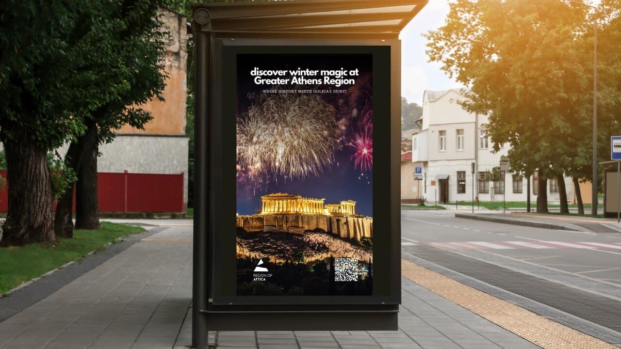 Η βραβευμένη καμπάνια προβολής της εορταστικής Αθήνας ξεκίνησε στις 25 Νοεμβρίου και διήρκεσε έως τις 31 Δεκεμβρίου, περιλαμβάνοντας σειρά διαφημιστικών δράσεων στη Μεγάλη Βρετανία, τη Γερμανία και τη Σουηδία, τόσο μέσω τηλεοπτικών σποτ όσο και με στοχευμένη ψηφιακή προβολή και φυσική παρουσία σε δημόσιους χώρους υψηλής επισκεψιμότητας — όπως σταθμοί μετρό, εμπορικά κέντρα και θεματικά σημεία σε μεγάλες πόλεις των παραπάνω χωρών της βόρειας Ευρώπης που χαρακτηρίζονται ως δυναμικές αγορές με επισκέπτες υψηλού εισοδήματος.