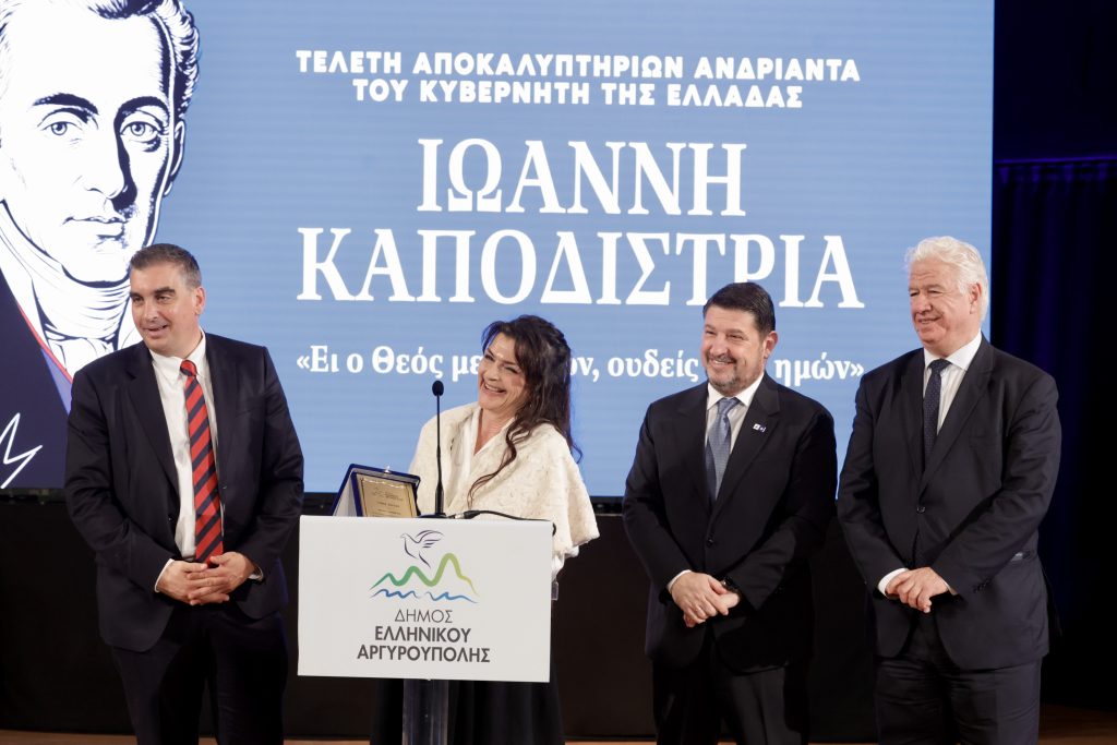 Ο Δήμαρχος Ελληνικού – Αργυρούπολης Γιάννης Κωνσταντάτος στην ομιλία του έκανε λόγο για μια «ιστορική μέρα» για τον προσφυγικό Δήμο, τονίζοντας πως πρόκειται για τον πρώτο Ανδριάντα του Κυβερνήτη, ένα μπρούτζινο άγαλμα τριών μέτρων, που τοποθετείται σε Δήμο της Αττικής, αποτελώντας δωρεά της Ελληνικής Ομογένειας. «Τα γεγονότα είναι πιο ωραία από τα όνειρα, όταν τα όνειρα γίνονται γεγονότα. Και σήμερα ζούμε ένα ιστορικό γεγονός», είπε ξεκινώντας την ομιλία του και αναφέρθηκε στη διαχρονική σημασία του Ιωάννη Καποδίστρια ως θεμελιωτή του Ελληνικού Κράτους και στον συμβολισμό της απόδοσης τιμής στο πρόσωπό του. «Εύχομαι οι επόμενες γενεές, τα παιδιά με τους γονείς, τις γιαγιάδες και τους παππούδες που θα διέρχονται μπροστά από τον Ανδριάντα και θα ρωτούν ποιος είναι αυτός, να λαμβάνουν την απάντηση “αυτός που πρέπει να γίνεις στη ζωή σου, ένας έντιμος, ανιδιοτελής άνθρωπος, που να προσφέρεις στον άνθρωπο και στην κοινωνία”. Αν καταφέρουμε να γίνουμε έστω και λίγο «Καποδίστριας» στην στάση ζωής μας, τότε ίσως γίνει πράξη το όραμα του Καποδίστρια να γίνει η Ελλάδα μας ο ιερός τόπος, αυτόνομος, για τις τέχνες και τα γράμματα, όπως αξίζει στους Έλληνες, γιατί στον Έλληνα δεν αξίζουν τα μικρά και τα στενά αλλά τα μεγάλα», τόνισε μεταξύ άλλων ο κ. Κωνσταντάτος.