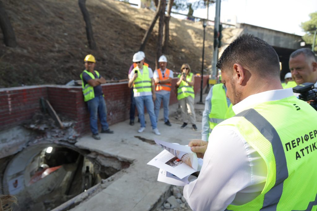 Αυτοψία στο εργοτάξιο κατασκευής του νέου μεγάλου συλλεκτήριου αγωγού ομβρίων υδάτων πραγματοποίησε ο περιφερειάρχης Αττικής Νίκος Χαρδαλιάς, καθώς σήμερα ο μετροπόντικας ολοκλήρωσε το πέρασμά του κάτω από την ΕΟ Αθηνών-Λαμίας.