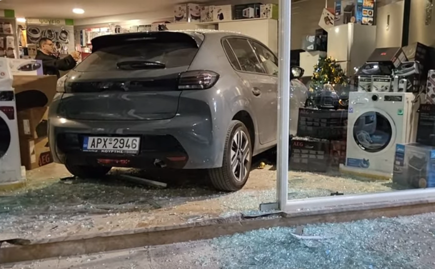 Η σφοδρή πρόσκρουση έσπασε την τζαμαρία και προκάλεσε εκτεταμένες ζημιές στο εσωτερικό της επιχείρησης. Ευτυχώς, το κατάστημα ήταν κλειστό εκείνη την ώρα, γεγονός που απέτρεψε πιθανό τραυματισμό πελατών ή εργαζομένων από τα θραύσματα.
