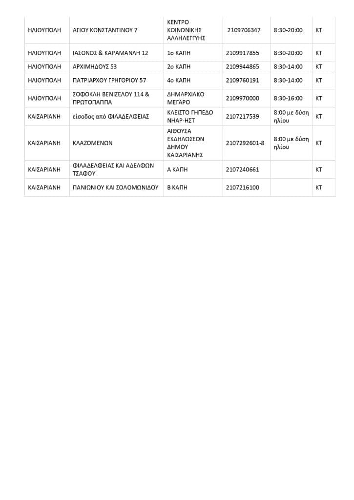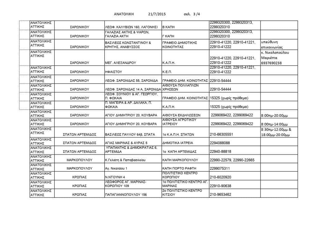 Οι πίνακες με τους κλιματιζόμενους χώρους ανά Περιφερειακή Ενότητα:
