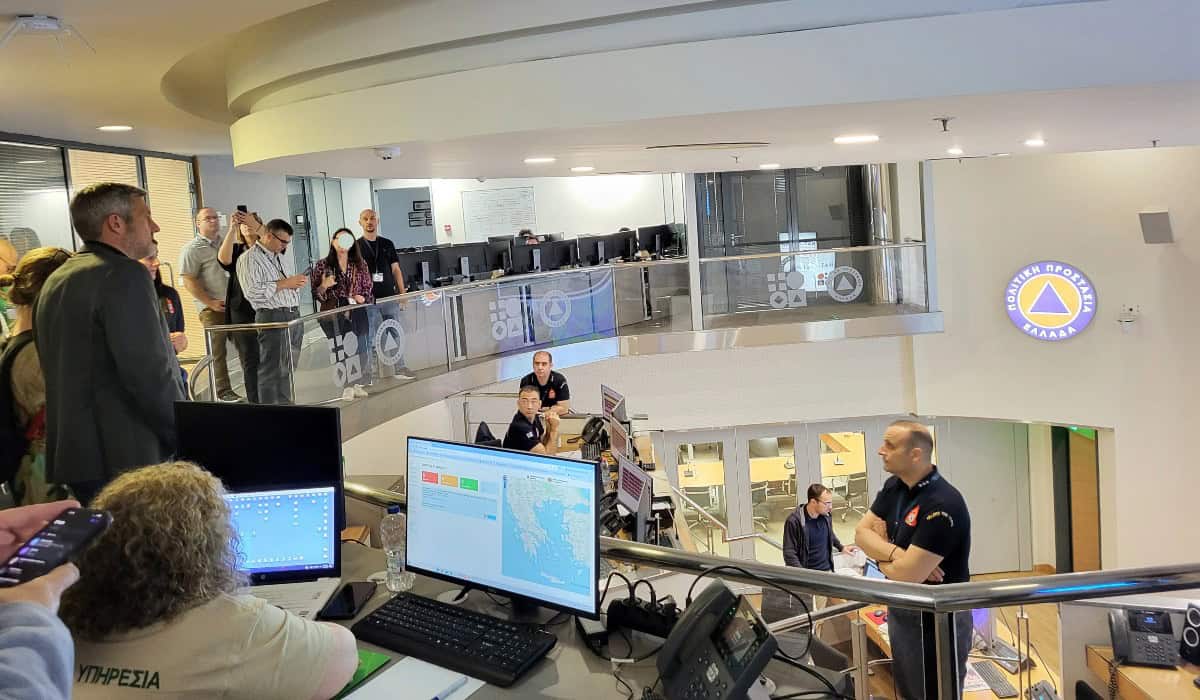 Ιδιαίτερη αναφορά αξίζει στην επίσκεψη που πραγματοποιήθηκε στις εγκαταστάσεις του Εθνικού Συντονιστικού Κέντρου Επιχειρήσεων & Διαχείρισης Κρίσεων της Γενικής Γραμματείας Πολιτικής Προστασίας, όπου οι συμμετέχοντες ενημερώθηκαν για τον τρόπο λειτουργίας αυτού, όπως και για τον Ευρωπαϊκό Μηχανισμό Πολιτικής Προστασίας (Union Civil Protection Mechanism – UCPM), καθώς και η υλοποίηση άσκησης επί χάρτου, διεθνούς εμβέλειας, την οποία προετοίμασαν και συντόνισαν στελέχη της Ελληνικής Αστυνομίας και του Κέντρου Μελετών Ασφάλειας, κατά την οποία οι εκπαιδευόμενοι κλήθηκαν να αντιμετωπίσουν προκλήσεις όπως διαχείριση πλήθους, δημόσιες συναθροίσεις, κυβερνοεπιθέσεις, διάδοση ψευδών ειδήσεων μέσω “deep fakes” και αντιμετώπιση της παραπληροφόρησης.
