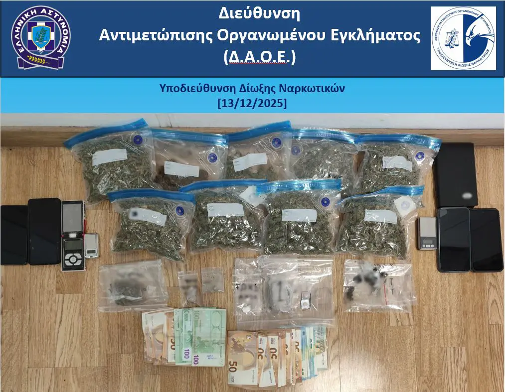 Για τον τερματισμό της δράσης τους, πραγματοποιήθηκε επιχείρηση, κατά την οποία μεσημβρινές ώρες της Παρασκευής (12/12/2025), εντοπίστηκαν οι -2- ανωτέρω σε περιοχή του Πειραιά, να κατέχουν από κοινού με σκοπό την περαιτέρω διακίνηση -99- γραμμάρια ηρωίνης, -10- γραμμάρια ακατέργαστης κάνναβης, καθώς και -0,7- γραμμάρια κοκαΐνης, λόγος για τον οποίο συνελήφθησαν.