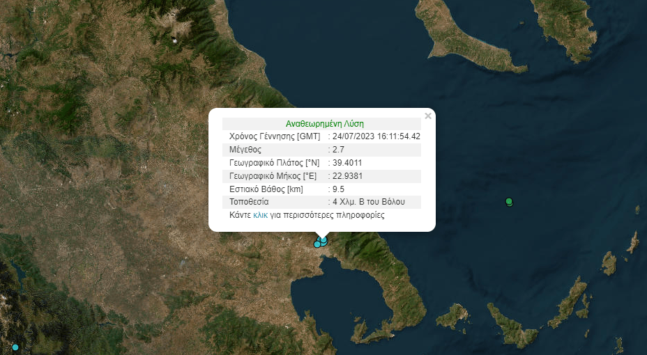 Πιο συγκεκριμένα, σύμφωνα με το Γεωδυναμικό Ινστιτούτο, το επίκεντρο της σεισμική δόνησης εντοπίζεται 4 χιλιόμετρα βόρεια από την πόλη του Βόλου.