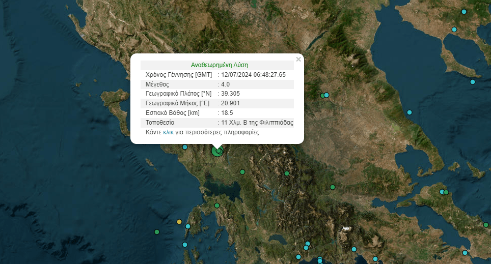 Σύμφωνα με το Γεωδυναμικό Ινστιτούτο, η σεισμική δόνηση σημειώθηκε 11 χιλιόμετρα βόρεια της Φιλιππιάδας, ενώ το εστιακό βάθος υπολογίζεται στα 18,5 χιλιόμετρα.
