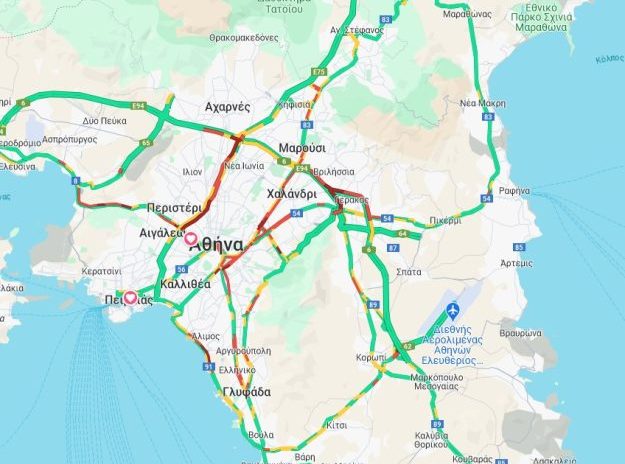 Κυκλοφοριακό κομφούζιο επικρατεί σε πολλούς δρόμους της Αττικής, κατάσταση την οποία επιδεινώνει επίσης και η μη λειτουργία ορισμένων φαναριών στη διασταύρωση της Καισαριανής και στη διασταύρωση του Βύρωνα, στη Λ. Κατεχάκη. Αυξημένη είναι επίσης η κίνηση σε Λ. Κηφισίας, Αλεξάνδρας και Κηφισό.