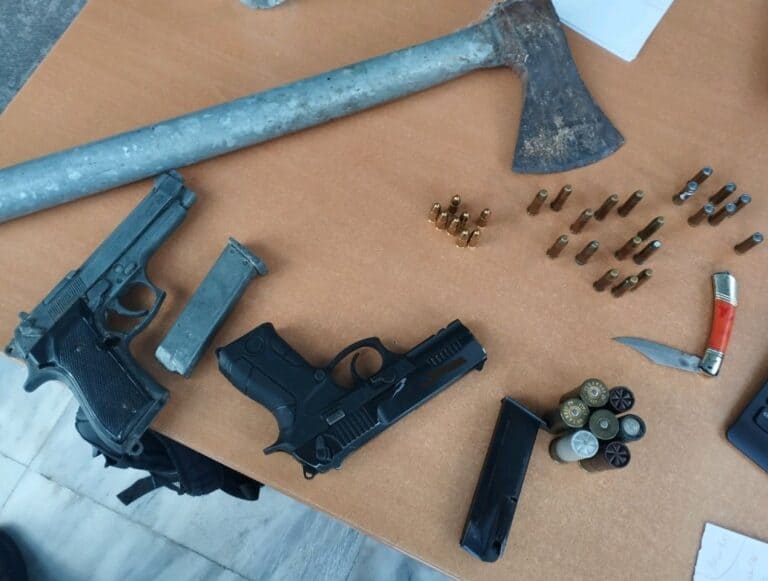 Ένας 61χρονος συνελήφθη, έπειτα από την καταγγελία της πρώην συζύγου του για απειλή με πυροβόλο όπλο. Κατά την έρευνα που διενεργήθηκε στο σπίτι του βρέθηκαν πιστόλια, μαχαίρια και φυσίγγια, τα οποία και κατασχέθηκαν.