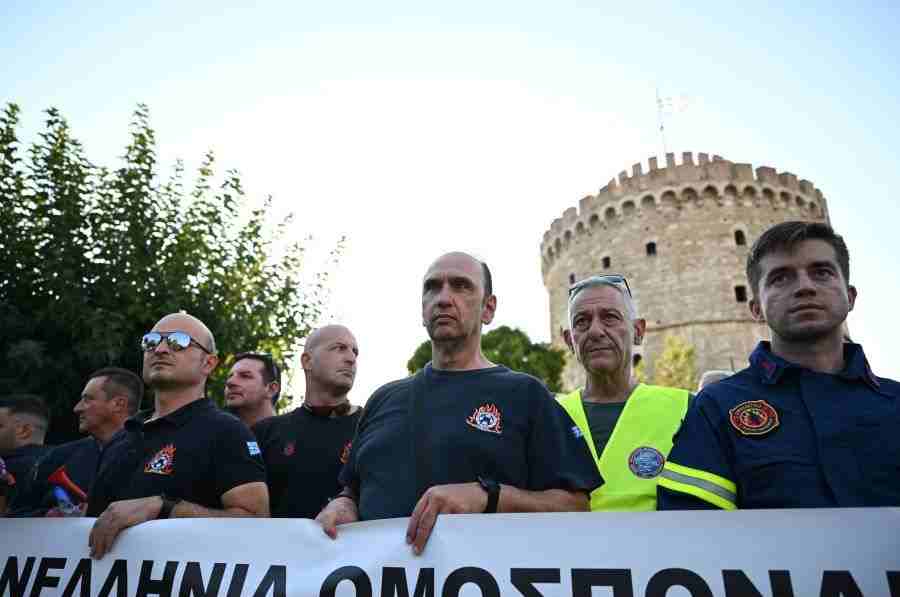 Οι ένστολοι αστυνομικοί, πυροσβέστες, λιμενικοί και στρατιωτικοί, εν ενεργεία και εν αποστρατεία συγκεντρώθηκαν στην πλατεία Λευκού Πύργου και πραγματοποίησαν διαμαρτυρία που κατέληξε στο Διοικητήριο.