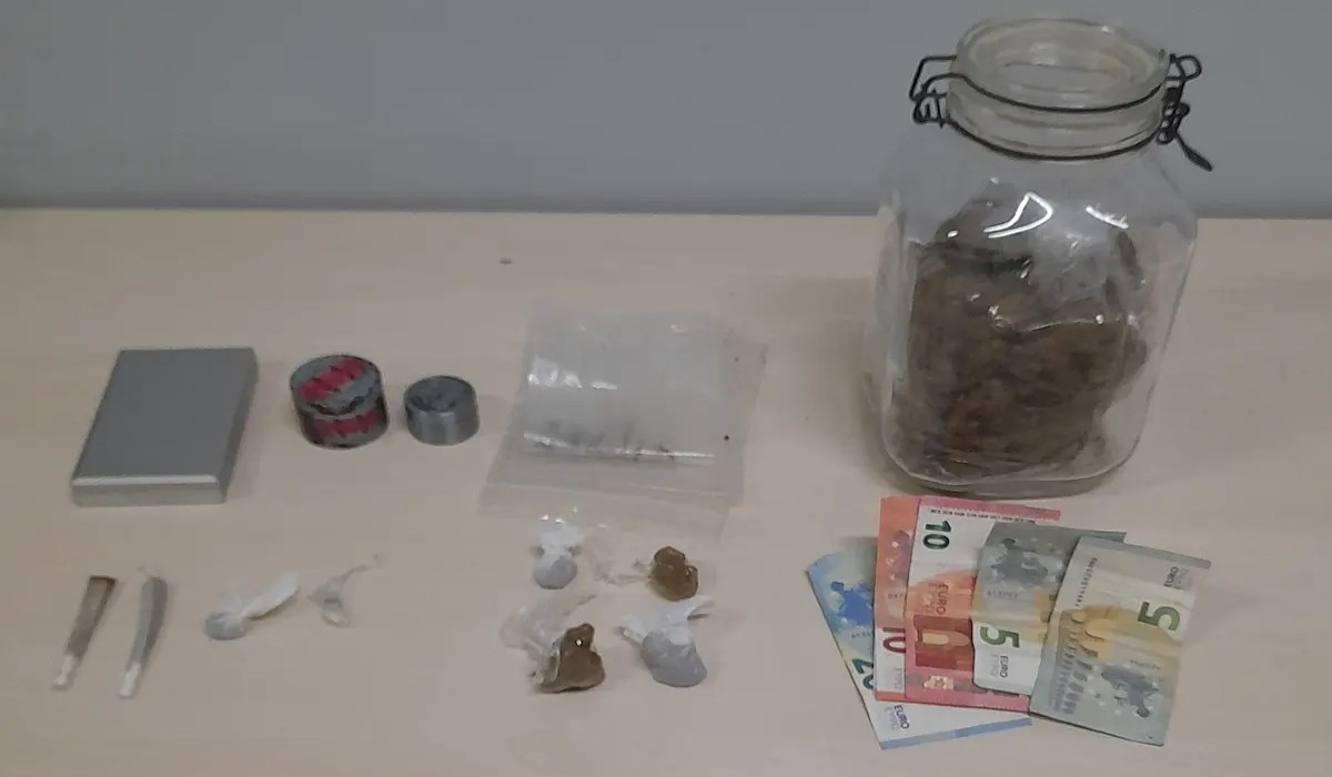 Βρέθηκαν πάνω του έξι συσκευασίες με μικροποσότητες κάνναβης -ακατέργαστης και κατεργασμένης σε μορφή «σοκολάτα», όπως επίσης μία ηλεκτρονική ζυγαριά, ένας μεταλλικός τρίφτης και το χρηματικό ποσό των 60 ευρώ, που φέρεται να συνδέεται με εμπορία ναρκωτικών.
