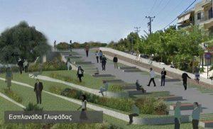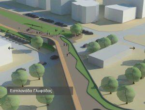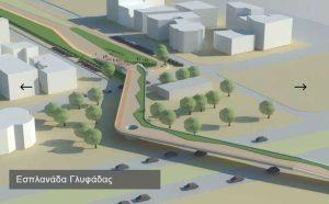 Η γέφυρα θα πάρει την ονομασία «Εσπλανάδα», θα ξεκινά από το Δημαρχείο και θα δίνει στους κατοίκους τη δυνατότητα περιπάτου, από το κέντρο της πόλης στην παραλία. Παράλληλα, η ανάπλαση αυτή αναμένεται να αποφορτίσει το εμπορικό κέντρο της Γλυφάδας από το μεγάλο πρόβλημα της στάθμευσης.
