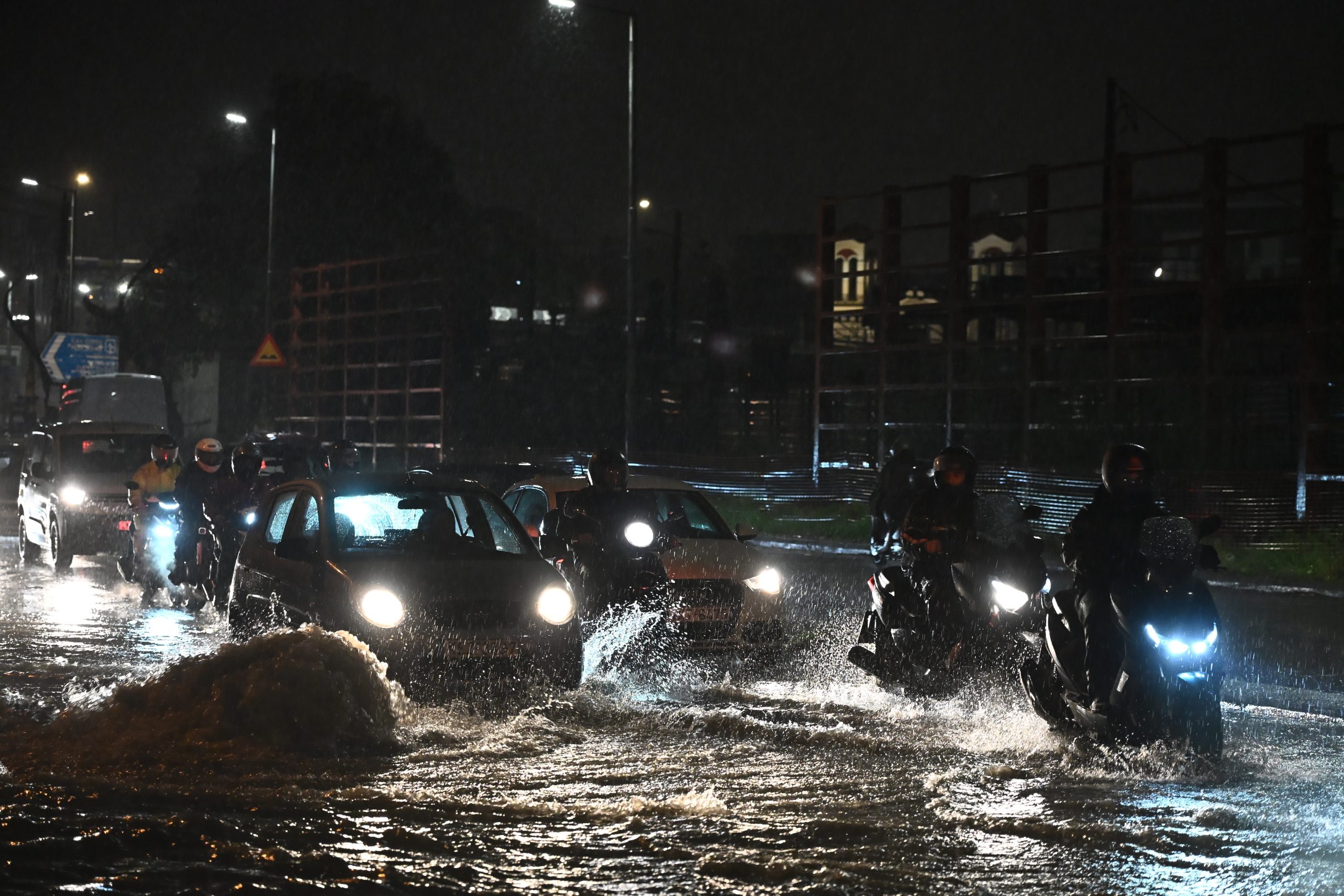 Σε πολλά σημεία της πόλης καταγράφονται ισχυρές βροχές και καταιγίδες, ενώ πολλοί δρόμοι της πόλης έχουν μετατραπεί σε ποτάμια.