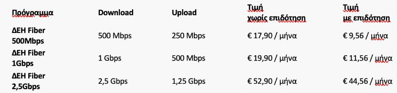Νέα, μειωμένα τιμολόγια για τους δικαιούχους της δράσης Gigabit Voucher που επιδοτεί συνδέσεις υπερυψηλής ταχύτητας για νοικοκυριά και επαγγελματίες, θέτει σε ισχύ η ΔΕΗ σε όλα τα προγράμματα ΔΕΗ Fiber. Οι τιμές ξεκινούν από Euro 9,56 το μήνα για τα 500 Mbps, καθιστώντας -όπως αναφέρει η επιχείρηση- τη ΔΕΗ Fiber την πιο προσιτή επιλογή FTTH στην ελληνική αγορά.