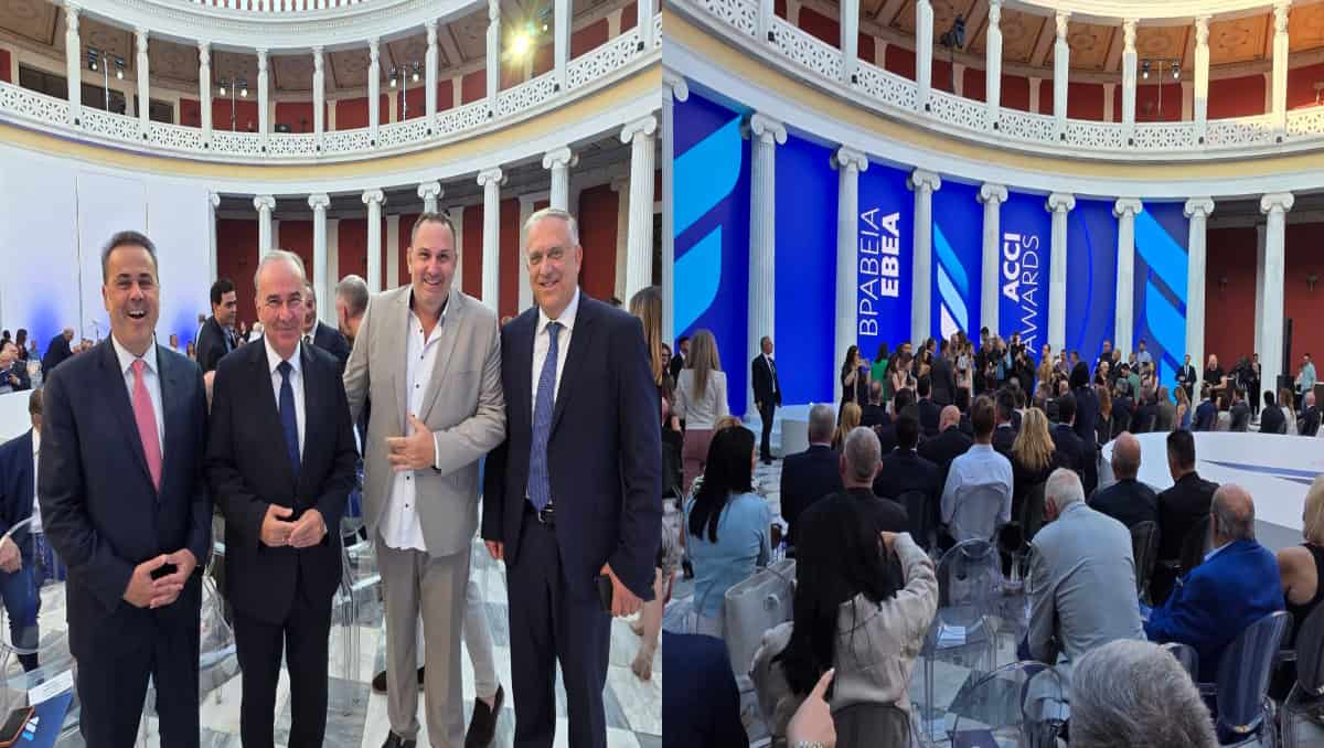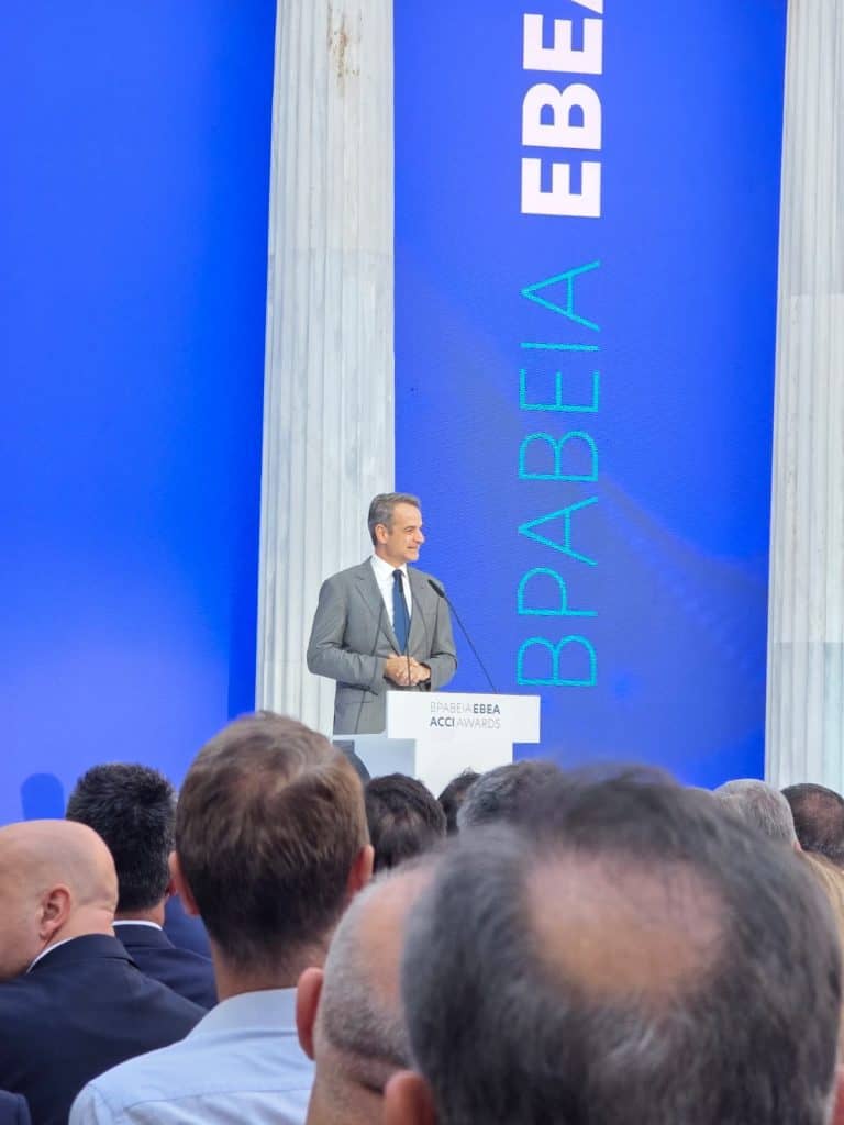 Σε μια λαμπερή εκδήλωση στην οποία απευθύνει χαιρετισμό ο πρωθυπουργός Κυριάκος Μητσοτάκης, διεξάγεται αυτή την ώρα στο Ζάππειο Μέγαρο η τελετή απονομής των ετήσιων βραβείων του Εμπορικού και Βιομηχανικού Επιμελητηρίου Αθηνών (ΕΒΕΑ).