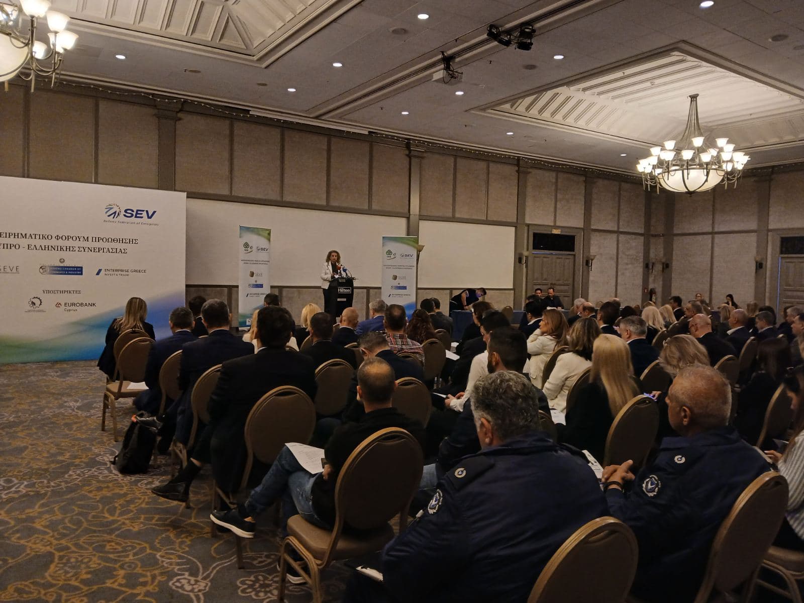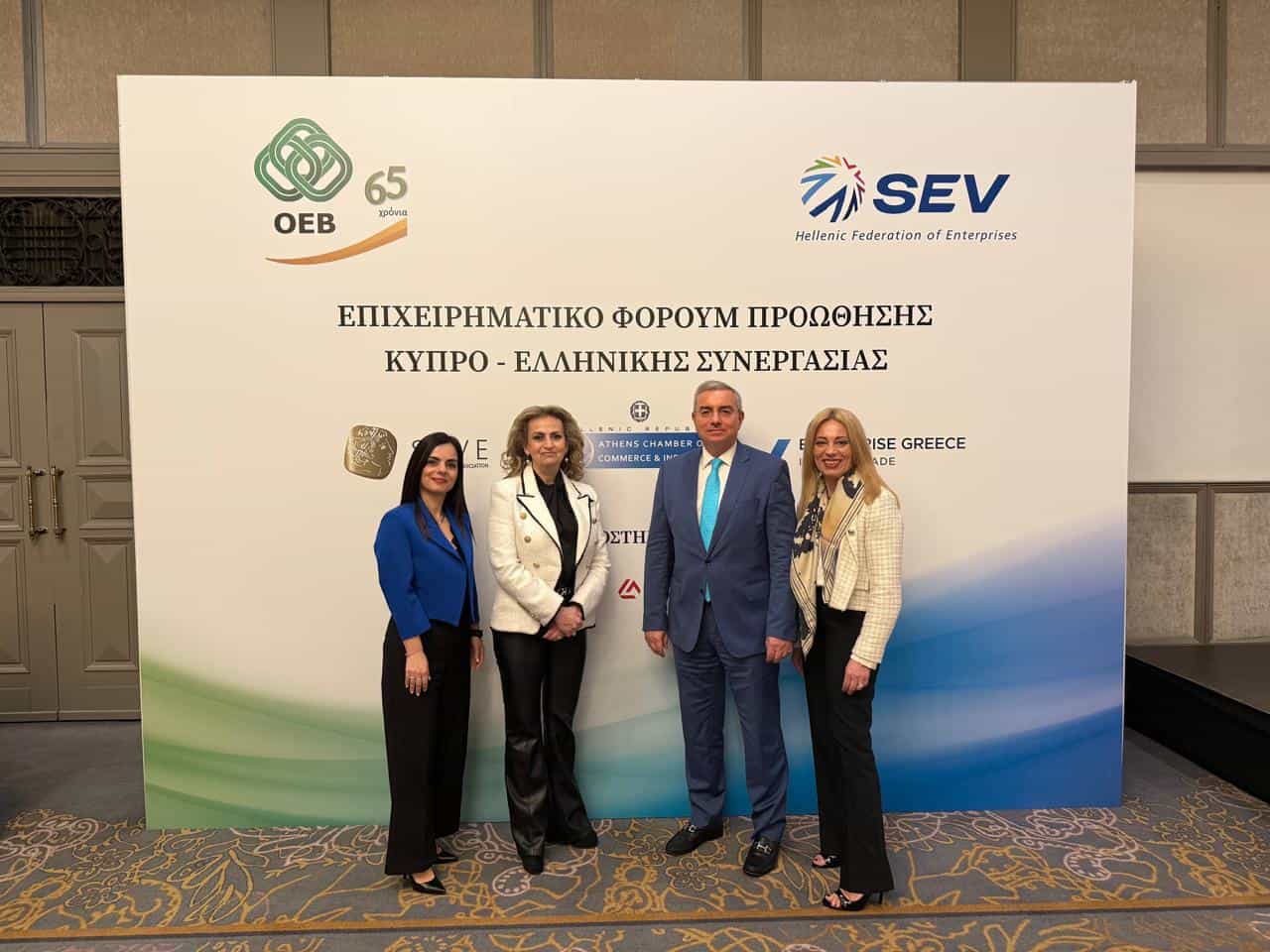 To επιχειρηματικό φόρουμ Ελλάδας – Κύπρου και οι επιχειρηματικές συναντήσεις πραγματοποιήθηκαν στις 12 Μαρτίου. Εκεί, ομιλίες πραγματοποίησαν ο υφυπουργός Εξωτερικών, αρμόδιος για την Οικονομική Διπλωματία και Εξωστρέφεια, Τάσος Χατζηβασιλείου, ο γενικός γραμματέας Διεθνών και Οικονομικών Σχέσεων του υπουργείου Εξωτερικών και πρόεδρος της Enterprise Greece, Δημήτρης Σκάλκος, ο πρέσβης και γενικός διευθυντής στο υπουργείο Εξωτερικών της Κύπρου, Ανδρέας Σ. Κακουρής, η ανώτερη λειτουργός στο υπουργείο Ενέργειας, Εμπορίου και Βιομηχανίας Κύπρου, Ελευθερία Ιωάννου, ο πρόεδρος του OEB, Αντώνιος Αντωνίου, η Α΄ αντιπρόεδρος του EBEA, Σοφία Κουνενάκη Εφραίμογλου, η διευθύντρια Διεθνών Σχέσεων του ΣΕΒ, Βίκυ Μακρυγιάννη και ο Παναγιώτης Χασάπης, εκτελεστικός αντιπρόεδρος του ΣΕΒΕ.