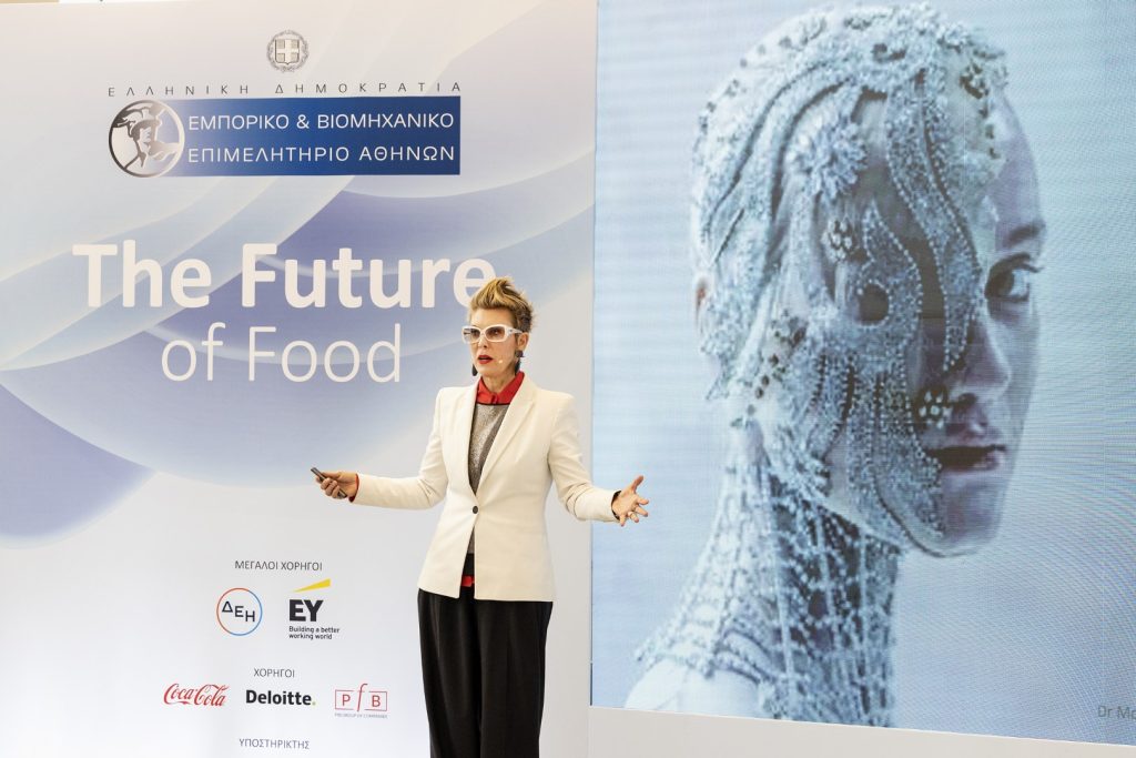 Ξεκινήσαμε σήμερα με το μέλλον της διατροφής και των τροφίμων. Στο μέλλον θα αλλάξει και ο τρόπος που καταναλώνουμε τις τροφές και κυρίως ο τρόπος που τις παράγουμε. Νέες συνήθειες θα αναδειχθούν και νέες τάσεις. Η διατροφή, εξάλλου, αφορά όχι μόνο τη δική μας υγεία, αλλά και την “υγεία” του πλανήτη. Ευχαριστώ την Πρόεδρο του ΕΒΕΑ κα Εφραίμογλου για την άριστη συνεργασία και ευελπιστώ και σε ακόμα πιο ενδιαφέρουσες κοινές δράσεις». «Ζούμε πλέον σε πρωτόγνωρους καιρούς και η πραγματικότητα και τα ιδανικά μας έχουν αλλάξει σημαντικά τα τελευταία χρόνια. Βιώνουμε αβεβαιότητα και αστάθεια, με κάποιους φόβους για το τι μας επιφυλάσσει το μέλλον», είπε η Δρ. Morgaine Gaye. Για τον λόγο αυτό, με την ομιλία της σκοπό είχε να «τροφοδοτήσει» τους παριστάμενους επιχειρηματίες με νέες και συναρπαστικές εικόνες από τον κόσμο των μελλοντικών τάσεων στον τομέα της βιομηχανίας τροφίμων και των συναφών κλάδων, προκειμένου να εμπνεύσει την καινοτομία, τη δημιουργικότητα και τις νέες δυνατότητες, να «γεμίσουν» δηλαδή ιδέες για την ανάπτυξη τροφίμων, συστατικών αλλά και συσκευασιών προκειμένου να γίνουν πιο ελκυστικά για τους καταναλωτές.
