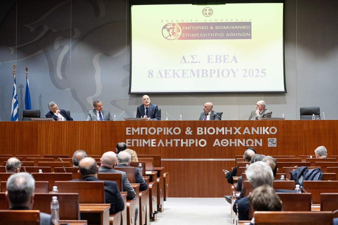 Με τη συμμετοχή του Υπουργού Εθνικής Άμυνας κ. Νίκου Δένδια, πραγματοποιήθηκε η χθεσινή συνεδρίαση του Διοικητικού Συμβουλίου του Εμπορικού και Βιομηχανικού Επιμελητηρίου Αθηνών (ΕΒΕΑ).