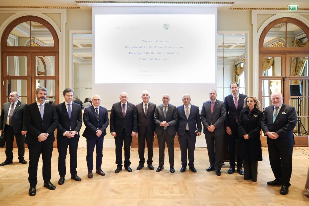 Το Εμπορικό και Βιομηχανικό Επιμελητήριο Αθηνών (ΕΒΕΑ) σε συνεργασία με την Πρεσβεία της Αρμενίας στην Αθήνα, και με στόχο τη διαμόρφωση ενός νέου παραγωγικού κεφαλαίου στις οικονομικές σχέσεις Ελλάδας και Αρμενίας και την ουσιαστική προσέγγιση της ελληνικής και αρμενικής επιχειρηματικής κοινότητας, διοργάνωσαν συζήτηση Στρογγυλής Τραπέζης – Round Table Discussion, την Πέμπτη 19 Φεβρουαρίου 2026, στο Ξενοδοχείο Μεγάλη Βρεταννία.