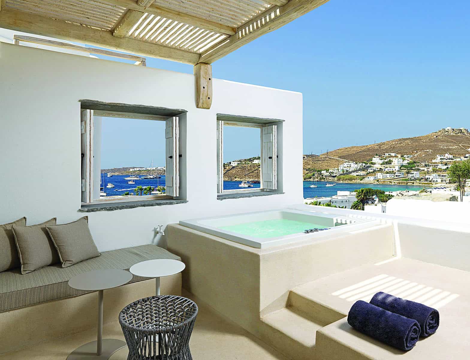 Οι επισκέπτες μπορούν να απολαύσουν στιγμές χαλάρωσης δίπλα στην πισίνα, να αφεθούν στη γοητεία των προσεγμένων δωματίων και σουιτών και να εμπνευστούν από την ομορφιά του φωτεινού κυκλαδίτικου τοπίου. Ταυτόχρονα, κορυφαία εστιατόρια, πολυσύχναστα beach clubs και συναρπαστικές εμπειρίες βρίσκονται ακριβώς δίπλα τους.