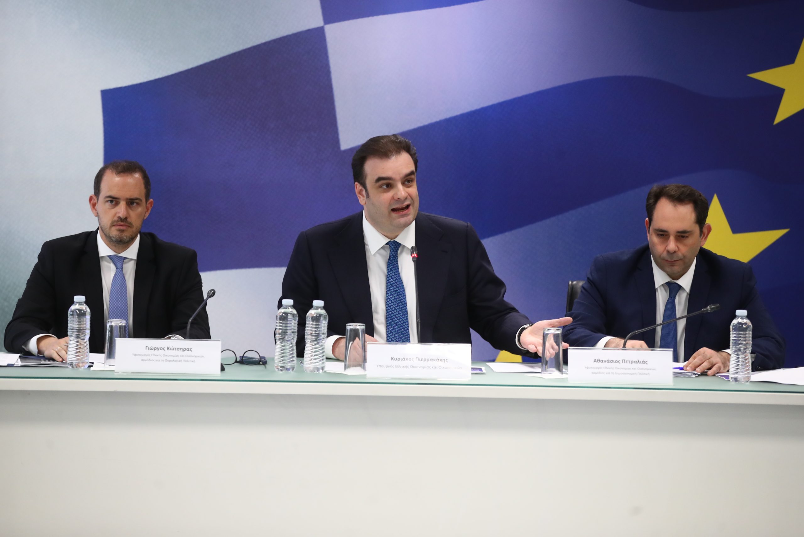 Συνέντευξη Τύπου παραχώρησαν ο Υπουργός Εθνικής Οικονομίας και Οικονομικών Κυριάκος Πιερρακάκης, οι Υφυπουργοί Θάνος Πετραλιάς και Γιώργος Κώτσηρας και η Γενική Γραμματέας Χρηματοπιστωτικού Τομέα και Διαχείρισης Ιδιωτικού Χρέους, Θεώνη Αλαμπάση, για την εξειδίκευση της νέας δέσμης μέτρων οικονομικής ενίσχυσης που ανακοίνωσε σήμερα ο πρωθυπουργός Κυριάκος Μητσοτάκης.