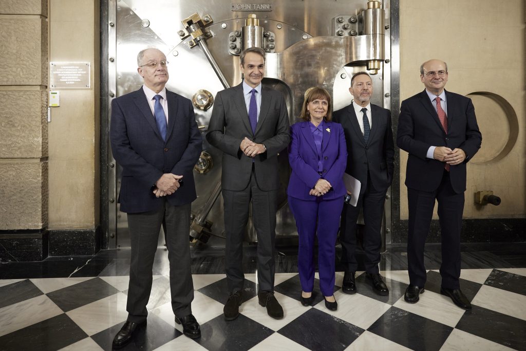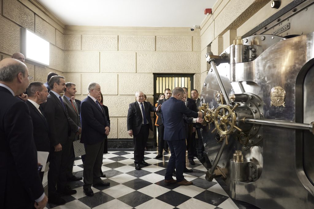 Τον ανακαινισμένο χώρο του Κεντρικού Θησαυροφυλακίου της Τράπεζας της Ελλάδος, όπου φυλάσσονται τα αποθέματα χρυσού της χώρας, εγκαινίασε ο διοικητής της Τράπεζας της Ελλάδος Γιάννης Στουρνάρας, παρουσία της προέδρου της Δημοκρατίας Κατερίνας Σακελλαροπούλου και του πρωθυπουργού Κυριάκου Μητσοτάκη.
